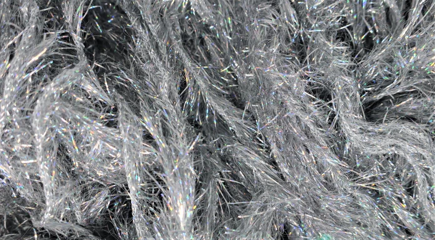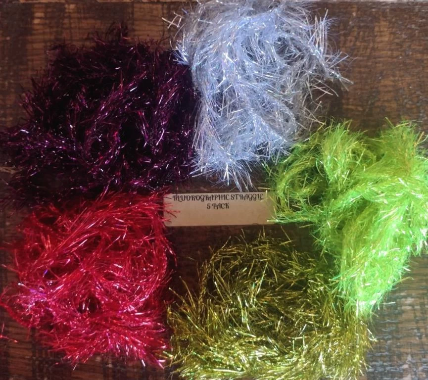 Flurographic straggle. This 17mm length straggle is both holographic and fluorescent. The facets of the holographic reflecting the different angles of light. This is also available with addition of UV fibres which is difficult to pick out in the pictures but if you look carefully at the golden version you will see the blue.