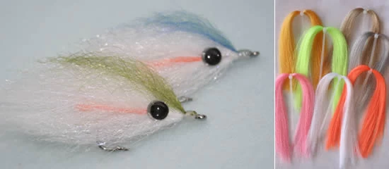 This is a flouroscent microfibre that will m ake any fly “light up” in the water. It is ideal for gills, and becomes highly visible when tied with Polar fibre or Slinky fibre. It works great for both fresh and saltwater patterns.