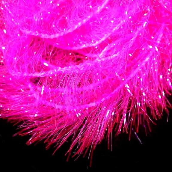 The latest version to the “Crystal Hackle” Range of Synethetics – new Medium Crystal Hackle 17mm – is a longer fibred version of standard Medium Crystal Hackle at 17mm length and is in between Medium & Large Crystal hackle. This is a useful size – for larger lures, without being ‘too’ long like Large Crystal hackle – yet providing more body movement than standard medium crystal hackle at 10mm. Dyed into a range of essential ultra bright fluorescent colours.