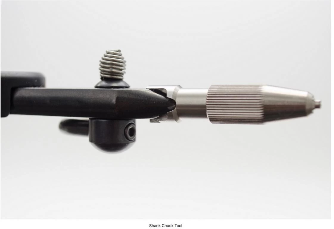 You have seen it (or a prototype of it) in our fly tying videos. You have called and emailed and asked about it. And now it’s (almost) here: the OPST Shank Chuck Tool. It took us a long time to dial this one in. The challenge was first, to make a tool that would fit with just about any vise on the planet. We succeeded. If this tool does not fit with your vise, we will refund your money. The second challenge was finding a tool that can both shanks and some tubes- by unscrewing the chuck housing, you can flip the inner chuck one way for shanks and the other way for tubes. The shank will hold shanks down to our Micro Shanks, which are 0.90mm in diameter. Tube adaptor inner diameter: 2mm.