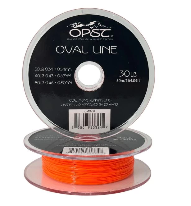 The time has come to expand upon our Mono Running Line selection with our new OPST Oval Line. It has a more oval profile than our round Lazar Line, which has several different characteristics. It has less memory, is easy to handle, and shoots very well. The oval shape created more torsional strength, resisting line twists. This also results in less drag and less tendency to get caught up in the first stripping guide when shooting. This oval mono has great knot strength and is preferred by anglers who want the benefit of a mono running line with a little more handleability. Available in three sizes: 30lb, 40lb, and 50lb. This line is a great addition to our growing family of running line options, with applicability in both the trout spey and larger rods. Give it a try today!