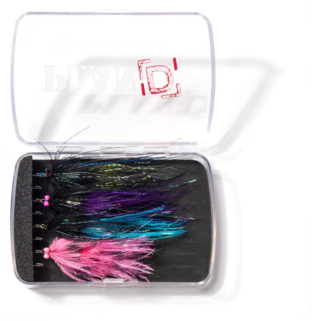The Plan D Pocket Articulated fly box utilizes our patent pending design for storing up to 8 of your favorite articulated fresh or saltwater flies. Simply slide the eye of the fly onto the stainless steel hook and insert the fly’s hook into the slotted foam. The Pocket is the little brother to the Pack and the perfect box when you want to travel light.