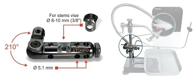 It clamps to a vice allowing the positioning up to four accessories at the same time. Fits on vise stems from 8 mm to 10 mm ( 3/8″). Supplied with 8 mm adaptor bush and allen key.