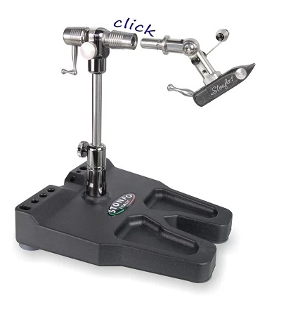 The Transformer is a high technology product that thanks to a fast coupling device on the shaft can be transformed from in-line vise to tube-fly vise or streamer vise. Three vises in one with just a click. The stainless steel shaft is in-line full rotary by dual precision ball bearings. All parts of three vises are included with Transformer. The new steady pedestal base has a useful integrated tool rack. Other important Transformer features: interchangeable jaws, adjustable rotary tension, smooth rotary motion, locking position at any angle, shaft fast locking every 45 degree angle, adjustable height, reversible for left hand tying. Other accessories included: rounded shape bobbin cradle, parachute plier, adjustable spring material clip, pivot thread cradle, allen keys and instruction manual.