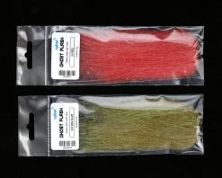 Ghost Flash is a mixture very fine translucent synthetic fiber and small amounth UV or Pearl flash fibers 6″ to 8″ strands that is packaged in hanks. It doesn’t absorb water, so large flies don’t get heavier. Soft, highly mobile with a pulsating action. Excellent material for wings, tails and bodies.